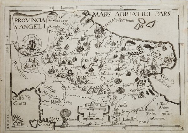 Carta geografica tratta dalla “Chorographica Descriptio Provinciarum et Conventum.”, atlante dell'ordine dei frati cappucini. Si tratta della nuova edizione dell'atlante delle province cappuccine, iniziato in forma manoscritta dal ministro generale dell'ordine, padre Silvestro da Panicale nel 1632, e che doveva servire da sussidio geografico per le visite generali. Alla sua morte il successore Padre Giovanni di Montecaliero, al quale spesso viene erroneamente attribuita la paternità delle carte, incaricò padre Massimino da Guechen di proseguire l'opera, edita per la prima volta a Roma nel 1643.A commissionare a Giovanni Battista da Cassine la Chorographica descriptio Provinciarum, et Conventuum FF. Min. S. Francisci Capucinorum fu Agostino da Latisana, 34° Ministro Generale dei cappuccini dal 1702 fino al 1709. Nell'estate di nove anni dopo, l'attento lavoro di rettifica ed aggiornamento era concluso e, retrodatando l'atlante al 1712, lo si poté stampare nel 1713 a Milano.L'opera conta 62 carte geografiche incise in rame. Vi sono raffigurate un'Europa, tra le poche mappe che rechi una data -il 1710- essendoci il 1711 per le altre datate, la Spagna con 7 carte, la Francia con 13, l'Italia con 26 carte geografiche, l'Impero con 15 fogli.L'opera mostrava visivamente la diffusione dell'ordine, infatti le diverse carte dell'atlante, che rappresentano nazioni e province, offrono per ognuna di esse la statistica completa dei conventi. Questa edizione definitiva del 1712 presenta le carte totalmente differenti, aggiornate ed arricchite. Incisione in rame, in ottimo stato di conservazione. Carta geografica tratta dalla “Chorographica Descriptio Provinciarum et Conventum.”, atlante dell'ordine dei frati cappucini. Si tratta della nuova edizione dell'atlante delle province cappuccine, iniziato in forma manoscritta dal ministro generale dell'ordine, padre Silvestro da Panicale nel 1632, e che doveva servire da sussidio geografico per le visite generali. Alla sua morte il successore Padre Giovanni di Montecaliero, al quale spesso viene erroneamente attribuita la paternità delle carte, incaricò padre Massimino da Guechen di proseguire l'opera, edita per la prima volta a Roma nel 1643.A commissionare a Giovanni Battista da Cassine la Chorographica descriptio Provinciarum, et Conventuum FF. Min. S. Francisci Capucinorum fu Agostino da Latisana, 34° Ministro Generale dei cappuccini dal 1702 fino al 1709. Nell'estate di nove anni dopo, l'attento lavoro di rettifica ed aggiornamento era concluso e, retrodatando l'atlante al 1712, lo si poté stampare nel 1713 a Milano.L'opera conta 62 carte geografiche incise in rame. Vi sono raffigurate un'Europa, tra le poche mappe che rechi una data -il 1710- essendoci il 1711 per le altre datate, la Spagna con 7 carte, la Francia con 13, l'Italia con 26 carte geografiche, l'Impero con 15 fogli.L'opera mostrava visivamente la diffusione dell'ordine, infatti le diverse carte dell'atlante, che rappresentano nazioni e province, offrono per ognuna di esse la statistica completa dei conventi. Questa edizione definitiva del 1712 presenta le carte totalmente differenti, aggiornate ed arricchite. Incisione in rame, in ottimo stato di conservazione. Cfr.