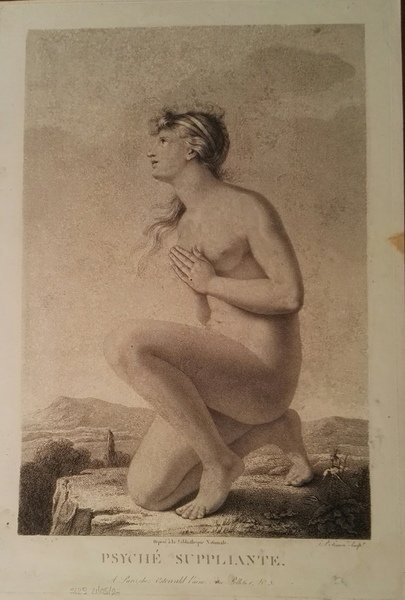 Bellissima incisione rappresentante Psiche supplicante. Simon sculpt. Deposé à la Bibilioteque Nationale. Buono stato di conservazione. Dimensioni: 30 cm x 45 cm.