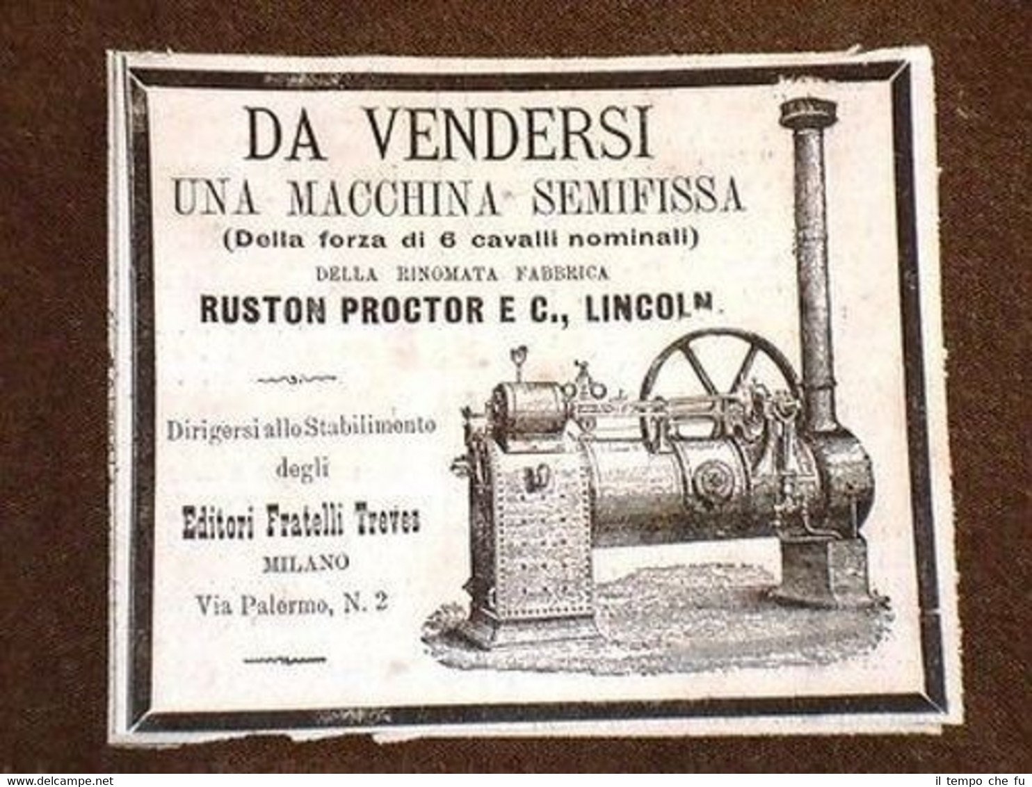 Rara Stampa Estratta da Rivista d'Epoca di fine '800 Pubblicità d'Epoca per collezionisti Macchina semifissa 6 Hp Ruston Proctor & C. Pubblicità-003T Dimensioni Cm 9,50 x 8,00 Qualora vogliate delle scansioni migliori contattateci, soddisferemo ogni vostra richiesta. Paypal Carta di credito Bonifico bancario Accuratamente adagiate su un cartoncino e protette da pellicola trasparente rigida il tutto viene inserito dentro plico di adeguate dimensioni per proteggerne l'integrità