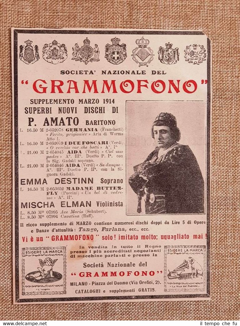 Pubblicità del 1914 Società Nazionale del Grammofono Dischi del Baritono P.Amato