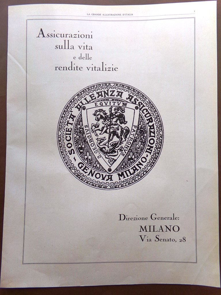 Pubblicità del 1925 Alleanza Assicurazioni Milano Aragozzini Taylor Radiatori