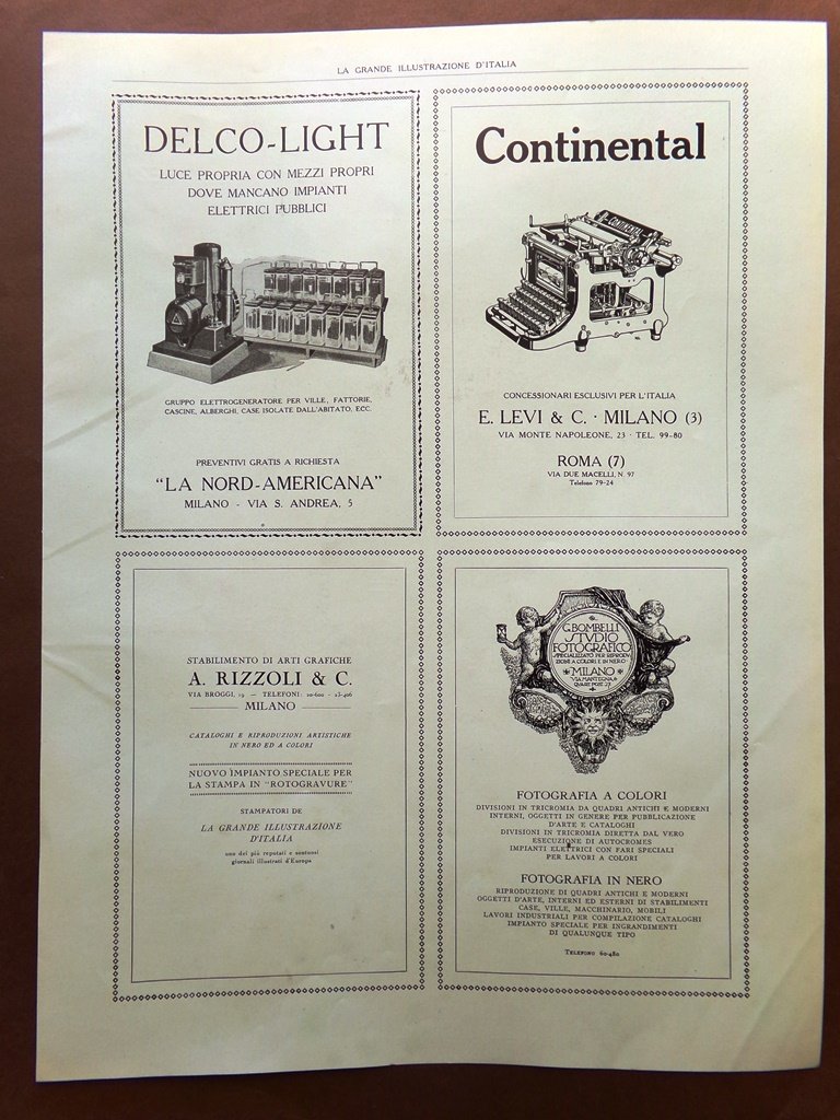 Pubblicità del 1925 Delco-light Continental Rizzoli Fotografia Marmo Porcellane