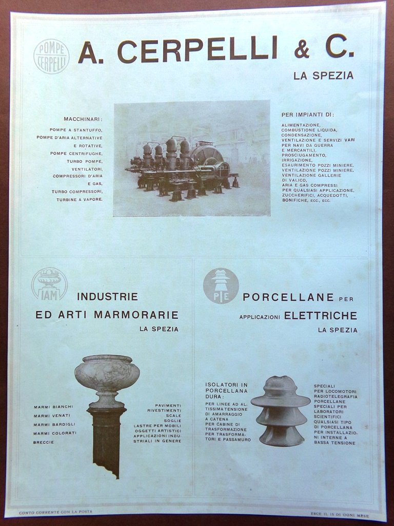Pubblicità del 1925 Diffusione Grande Illustrazione Macchine Cerpelli La Spezia