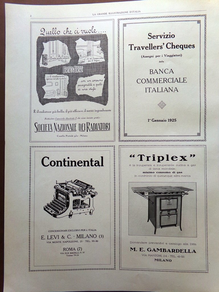 Pubblicità del 1925 Lago Maggiore Stresa Radiatori Continental Triplex Gas