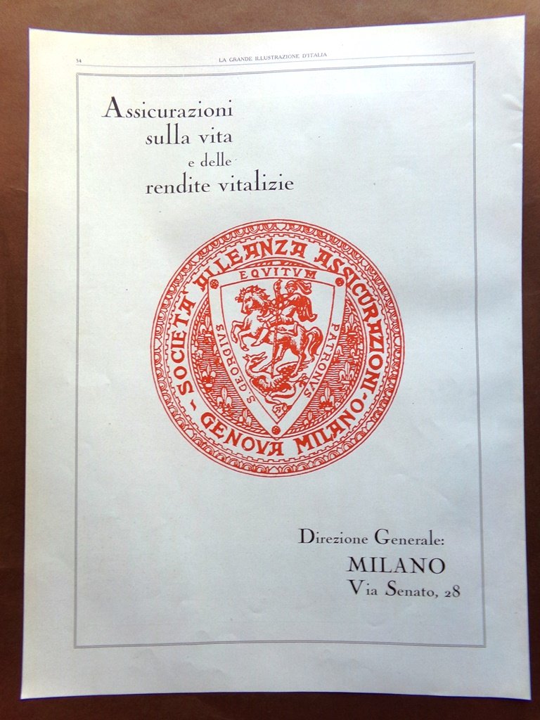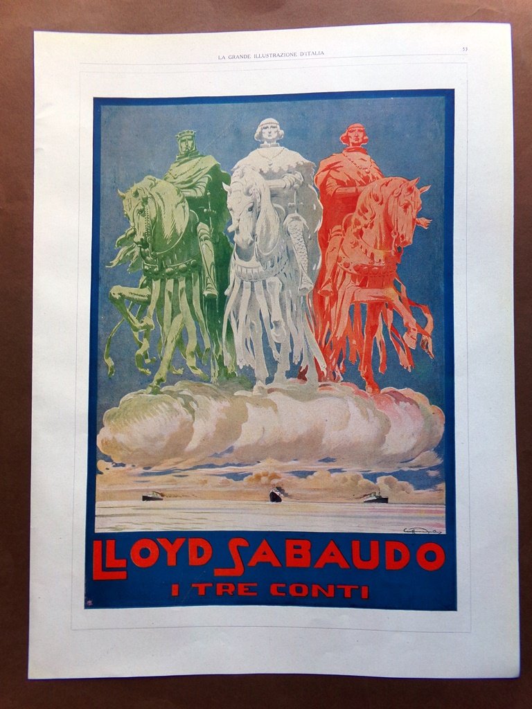 Pubblicità del 1925 Lloyd Sabaudo I tre Conti Alleanza Assicurazioni Milano