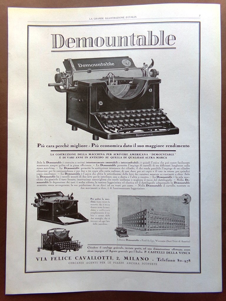 Pubblicità del 1925 Macchina da Scrivere Demountable Farmacia Cagnola Lisi