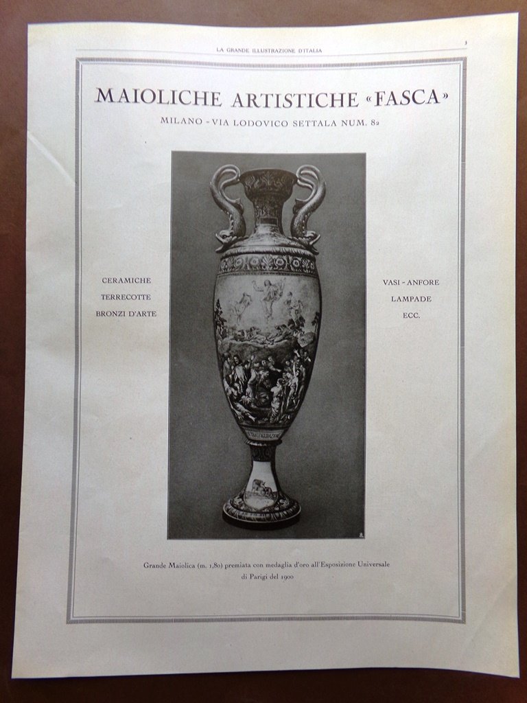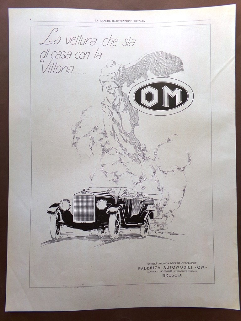 Pubblicità del 1925 Maioliche Artistiche Fasca Ceramiche Fabbrica Automobili OM