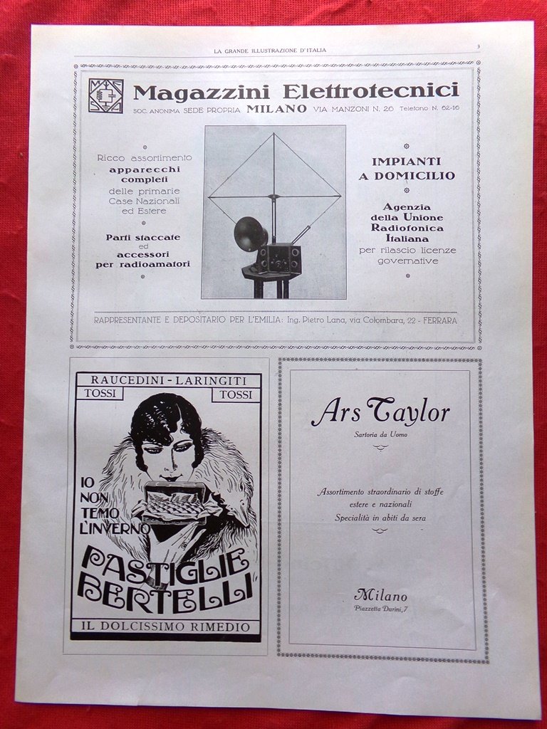 Pubblicità del 1925 Pastiglie Bertelli Ars Taylor Elettrotecnici Officine OM