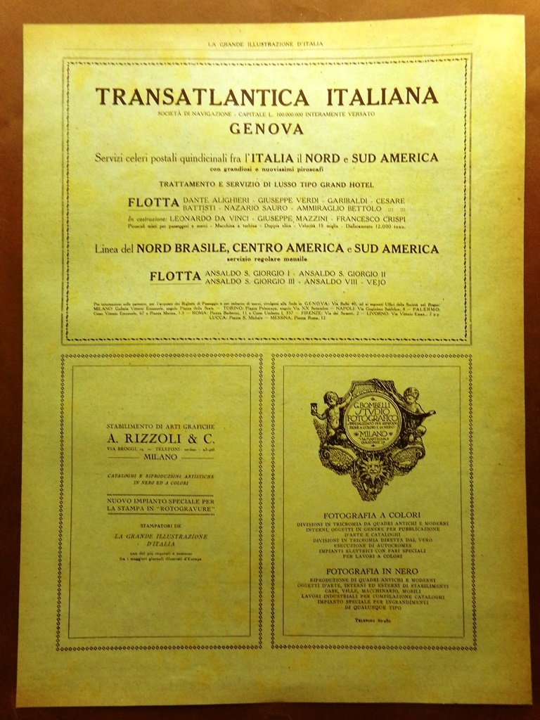 Pubblicità del 1925 Transatlantica Italiana Rizzoli Bombelli Cerpelli Macchinari