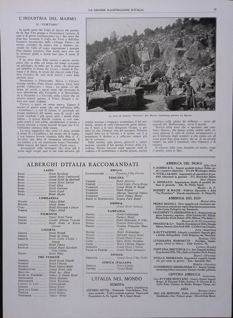 Pubblicità del 1927 Lloyd sabaudo Cava Marmo Portoro Spezia Monte Castellana