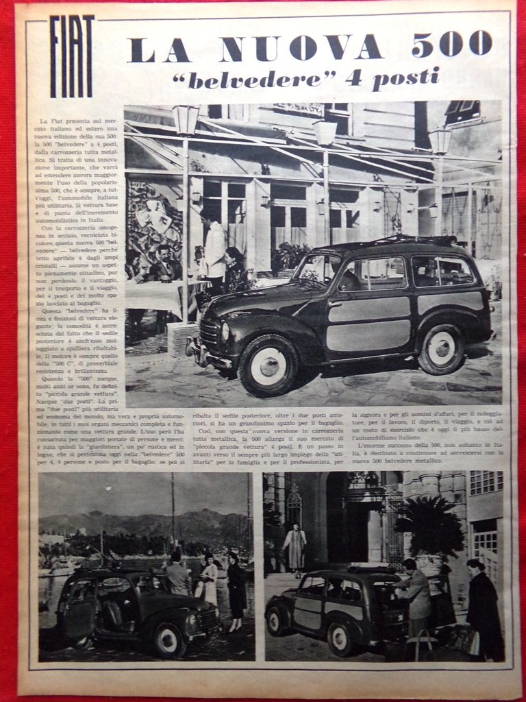 Pubblicità del 1952 La Nuova Fiat 500 Belvedere a 4 posti Automobile