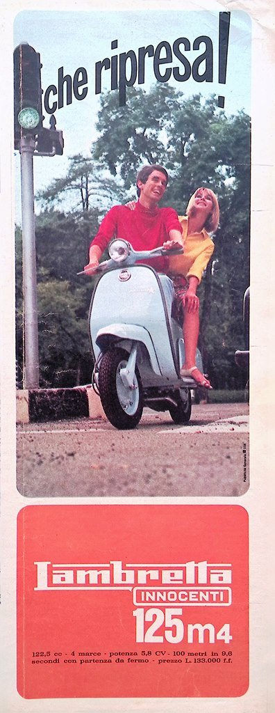 Pubblicità del 1966 Lambretta Innocenti 125 Che Ripresa