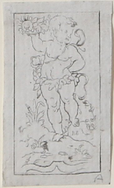 Copia, a soli contorni (punteggiati), di una composizione che secondo il marchese Malaspina deriverebbe da un niello appartenuto alla collezione Durazzo, che per ora non è stato identificato. I nielli della collezione Durazzo vennero fatti riprodurre in incisioni proprio dal proprietario, tra fine XVIII e inizio XIX secolo, a Venezia, costituendo una serie che venne diffusa e collezionata dagli amatori. Bartsch descrive queste copie nel suo volume edito nel 1811, data che quindi costituisce il terminus ante quem per l'esecuzione. La composizione viene interpretata come un'allegoria dell'Abbondanza. Copy, with only dotted outlines, of a composition that, according to Marquis Malaspina, was pulles from a niello that belonged to the Durazzo collection, which has not yet been identified. The nielli of the Durazzo collection were reproduced in prints by owner’s will, between the end of the 18th and the beginning of the 19th century, in Venice - as also specified by Malaspina in his catalog of 1824 - constituting a series that was circulated and collected by the amateurs. Bartsch describes these niello prints in his volume published in 1811, a date that therefore constitutes the terminus ante quem for the execution. The composition is interpreted as an allegory of Abundance. Cfr.
