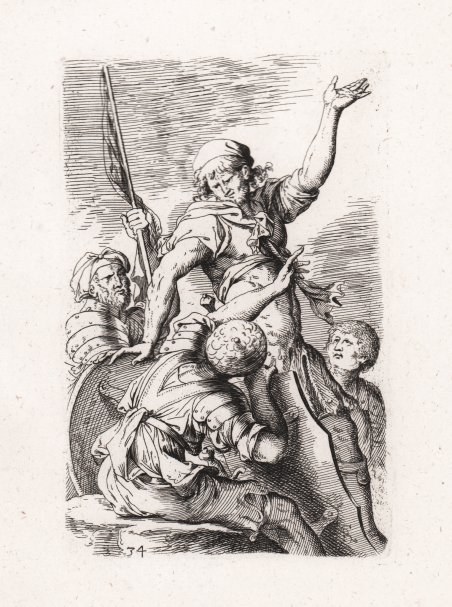 Acquaforte, circa 1675/80, priva di firma. Copia in controparte della stampa di Salvator Rosa, della serie dei capricci con soldati, detta le ' Figurine. ' La serie delle cosiddette ' Figurine ' di Salvator Rosa ebbe un grande successo, documentato dal gran numero di imitazioni che ebbe in tutta Europa. La prima edizione di questa raccolta fu realizzata dal Rosa in 62 tavole all’acquaforte incise tra il 1656 e il 1657. Almeno otto diverse copie della stessa edizione furono eseguite tra la fine del XVII e la prima metà del XVIII secolo. ' ' La serie venne inserita nella celebre ' Academia Todesca della Architectura, Scultura & Pittura: oder Teutsche Academie der Edlen Bau, Bild-und Mahlerey-Künste, raccolta monumentale, riccamente illustrata da centinaia di incisioni raffiguranti antichità, architettura e mitologia classica, edita a Norimberga e Francoforte tra il 1675 ed il 1680. ' Per le incisioni, il Sandrart si avvalse dei suoi collaboratori Karl Gustav von Amling (1650-1703); Philip Kilian (1628-1693); Richard Collin (1627-97); Georg Andreas Wolfgang (1631-1716); Johann Georg Waldreich (d.1680); Melchior Küsel (1626-1683); Franck, Johann (fl.1659-1690); George Christoph Eimmart (1638-1705); Susanna Maria von Sandrart (1658-1716); Bartholomäus Kilian (1630-1696). Bellissima prova, impressa su carta vergata coeva, con margini, in perfetto stato di conservazione. ' Bibliografia Cfr. Bartsch, Le ' Peintre graveur ' (XX.283.51); Wallace p. 330, 133; National Gallery (Washington), ' Mark J. Millard, III (1998), no. 111; F.W. H. Hollstein, ' German engravings . ca. 1400-1700 ' (1954-), 38-41; Anna Schreurs, ' Unter Minerva schutz: bildung durch kunst in Joachim von Sandrarts 'Teutscher Academie' ' (2012). Etching, ca. 1675/80, unsigned. Copy of Salvator Rosa's print from the Capricci with soldiers series, called the ' Figurine. The series of the so-called ' Figurine ' of Salvator Rosa had a great success, documented by the large number of imitations that had throughout Europe. The first edition of this collection was made by Rosa in 62 etching plates engraved between 1656 and 1657. At least eight different copies of the same edition were made between the end of the 17th and the first half of the 18th century. This set is part of the monumental ' Academia Todesca della Architectura, Scultura & Pittura: oder Teutsche Academie der Edlen Bau, Bild-und Mahlerey-Künste ' (Deutsche Academy of Architecture - Sculpture – Painting). ' The first edition, in German, was published by Joachim von Sandrart in Nuremberg, in three volumes respectively in 1675, 1679 and 1680. For the plates Sandrart used his students as and many others artist as ' Karl Gustav von Amling (1650-1703); Philip Kilian (1628-1693); Richard Collin (1627-97); Georg Andreas Wolfgang (1631-1716); Johann Georg Waldreich (d.1680); Melchior Küsel (1626-1683); Franck, Johann (fl.1659-1690); George Christoph Eimmart (1638-1705); Susanna Maria von Sandrart (1658-1716); Bartholomäus Kilian (1630-1696). The work is full of illustrations of ancient and modern Roman buildings, sculpture, the theory of painting, biographies of artists, including German and contemporary (ie seventeenth-century) artists, and antiquities. Joachim von Sandrart was a painter of some note but it is for his ' Teutsche Academie ' that he is chiefly remembered. His compendious treatise includes sections on ancient sculpture and architecture, perspective, the theory of painting, artists’ biographies, a translation of Ovid’s Metamorphoses and so on. The second part of Book I purports to give a history of art from its earliest origins, and opens with an engraving of two scenes of legendary accounts of the discovery of drawing. ' The work is dedicated to the world-renowned German nation and to champions and lovers of art ('Der Welt-berühmten Teutschen Nation . Kunst-Helden und Kunstliebenden'). Beautiful proof, printed on contemporary laid paper, with margins, in perfect condition. Bibliografia Cfr. Bartsch, Le ' Peintre graveur ' (XX.283.51); Wallace p. 330, 133; National Gallery (Washington), ' Mark J. Millard, III (1998), no. 111; F.W. H. Hollstein, ' German engravings . ca. 1400-1700 ' (1954-), 38-41; Anna Schreurs, ' Unter Minerva schutz: bildung durch kunst in Joachim von Sandrarts 'Teutscher Academie' ' (2012). Cfr.