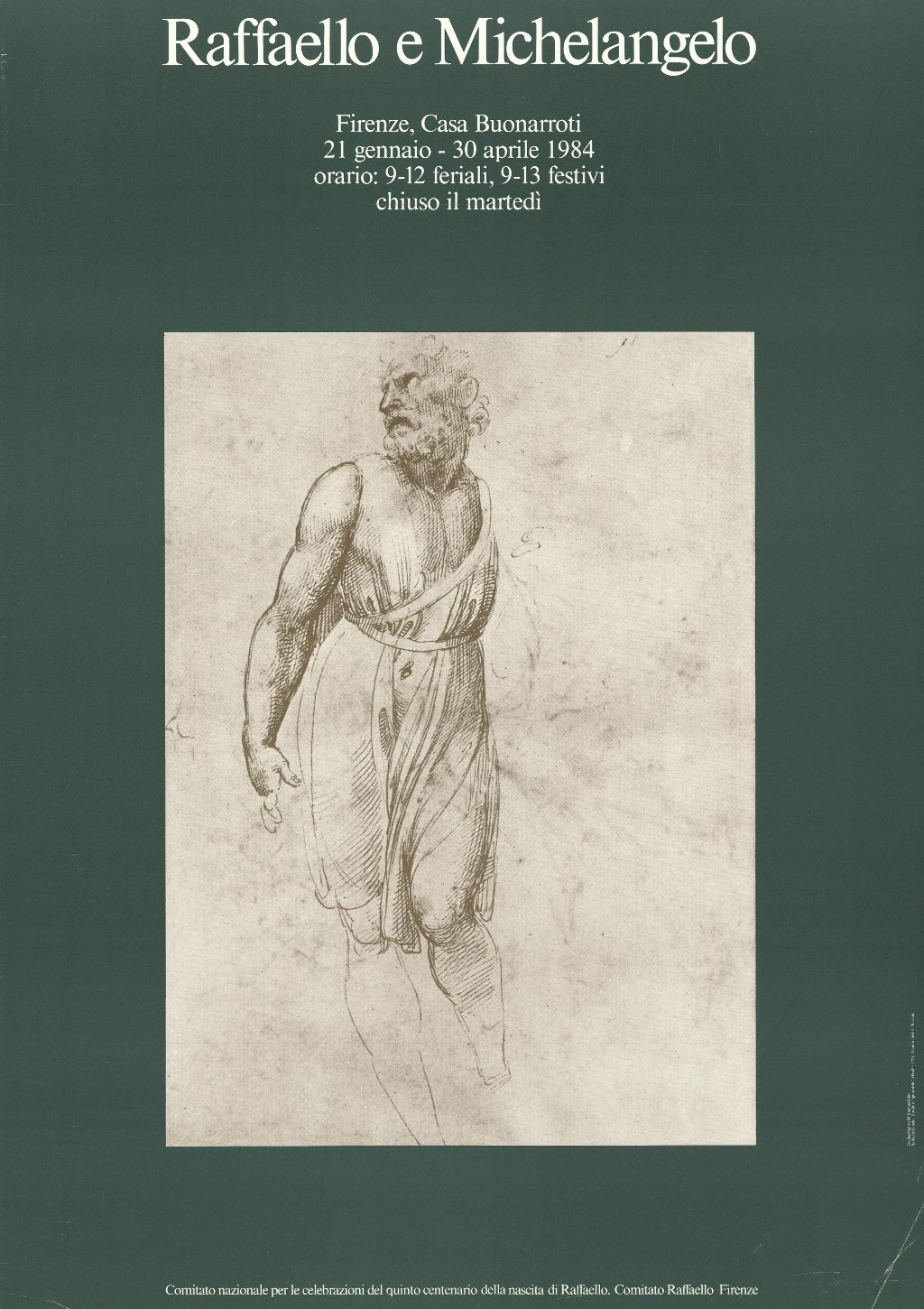 Manifesto originale. Comitato nazionale per le celebrazioni del quinto centenario della nascita di Raffaello. Casa Buonarroti, 21 gennaio - 30 aprile 1984. Leggero segno del tempo