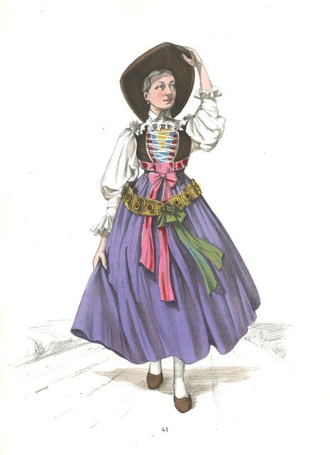 Costume caratteristico del luogo, disegnato, stampato e colorato a mano dal pittore Aldo Fornoni coadiuvato dalla pittrice Maria Angela Grassi