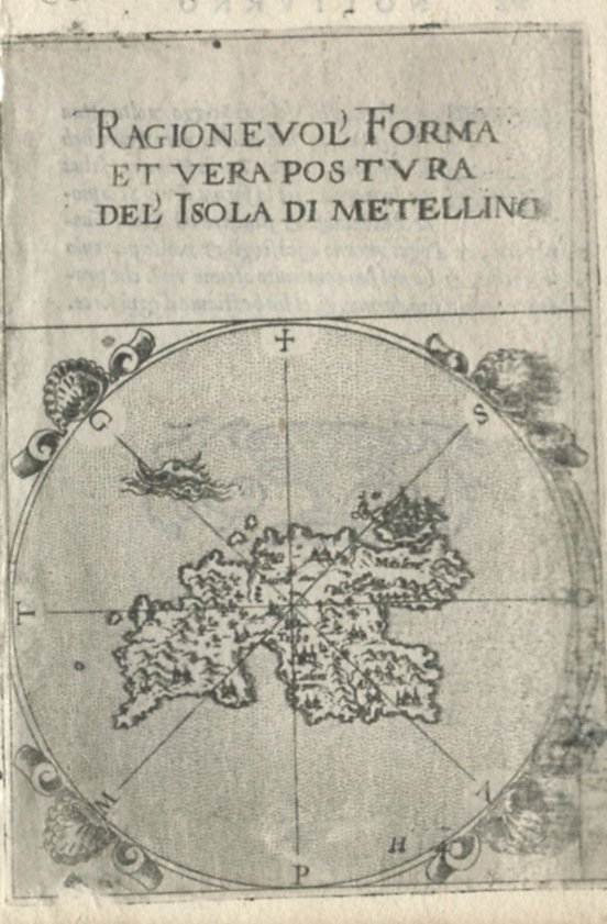 Copper engraving, by Marelli, mm 133x90. Rare map of Mytilene from "Diporti notturni".<BR>Very good example, but left margin trimmed at platemark. <BR>
