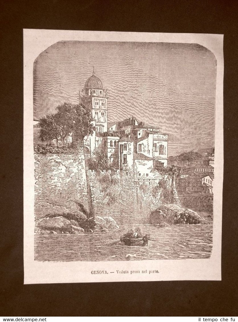Rara veduta di Genova presa dal Porto del 1866 Liguria
