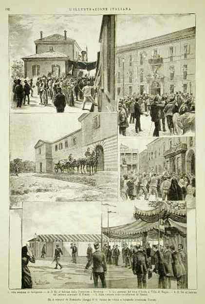 Cinque vignette in unico foglio raffiguranti il passaggio del Re in Romagna. Testo al verso