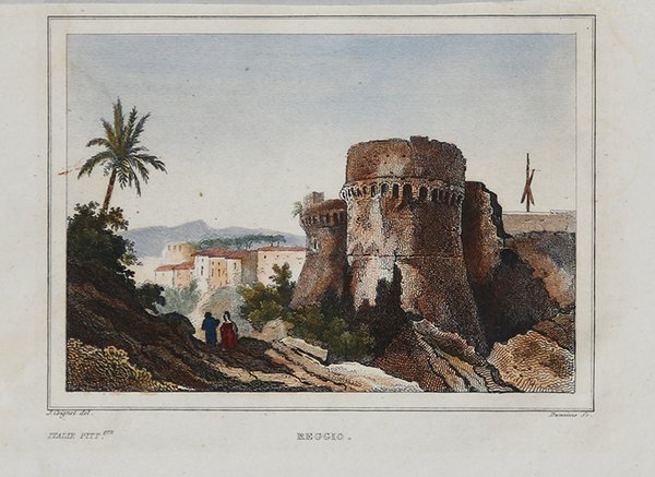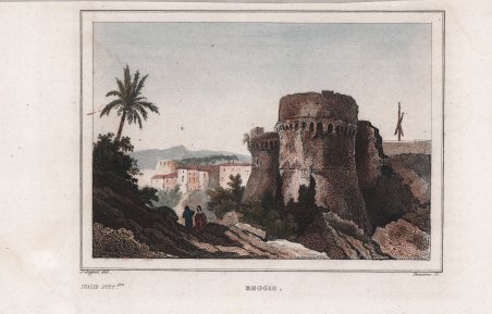 Veduta tratta da L'Italie pittoresque [.]. Gravures sur acier d'après les dessins de madame D'Haubecourt-Lescot, de Mm. le Comte de Forbin, Granet, Deveria… edita a Parigi dal 1834 al 1836. Bella guida sull'Italia, pubblicata per la prima volta nel 1834, composta dai racconti di personaggi come Norvins, Nodier, Dumas, Berlioz (autore del capitolo Voyage musicale) e altri con le belle incisioni in acciaio da disegni di madame D'Haubecourt-Lescot, del conte de Forbin, Granet, Deveria ecc. Incisione in rame, finemente colorata a mano, in ottimo stato di conservazione. View taken from L'Italie pittoresque [.]. Gravures sur acier d'après les dessins de madame D'Haubecourt-Lescot, de Mm. le Comte de Forbin, Granet, Deveria. published in Paris from 1834 to 1836. A beautiful guide to Italy, first published in 1834, consisting of the accounts of such personalities as Norvins, Nodier, Dumas, Berlioz (author of the chapter entitled Voyage musicale) and others with beautiful steel engravings from drawings by Madame D'Haubecourt-Lescot, the Comte de Forbin, Granet, Deveria, etc. ' Copperplate, finely hand-coloured, in excellent condition. Cfr.