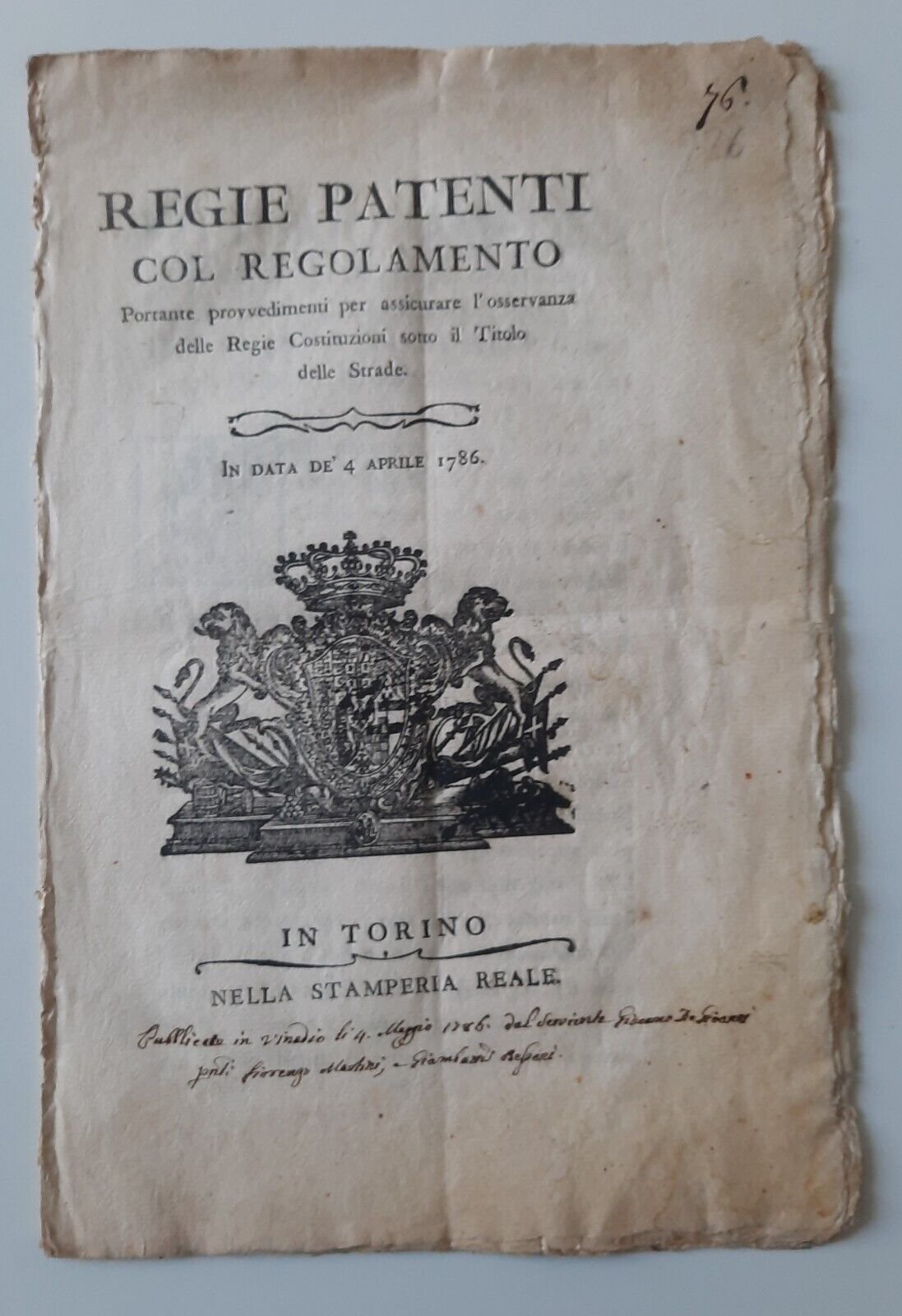 REGIE PATENTI COL REGOLAMENTO REGIE COSTRUZIONI TORINO 1786