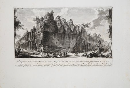 Acquaforte, 1762, firmata in lastra in basso a destra. Della serie Il Campo Marzio dell’Antica Roma. Magnifica prova, dalla prima edizione dell'opera, impressa su carta vergata coeva con tipica filigrana del "doppio cerchio e giglio con lettere CB" (ove presente), con ampli margini, in ottimo stato di conservazione.Sebbene pubblicata solo nel 1762 questa fondamentale opera, che appare come una delle più complesse del Piranesi, veniva già annunciata dall’artista nelle Antichità Romane, delle quali, secondo il Focillon, può essere considerata come il quinto tomo. La vicende del Campo Marzio si intrecciano con l’amicizia con lo scozzese Robert Adam, al quale l’opera è dedicata. Adam era giunto a Roma nel 1755 e ben presto aveva conosciuto Piranesi, forse per mezzo del comune amico Charles-Louis Clerisseau, trovando nella comune passione archeologica la base di una reciproca stima, che continuò anche dopo il ritorno dell’architetto Londra. Fu proprio Adam che, durante le ricognizioni dei resti dei monumenti del Campo Marzio, suggerì al Piranesi l’idea di realizzare una mappa dell’intera area, che inizialmente doveva essere inclusa nelle Antichità, e poi finì per costituire la base di un progetto ben più ambizioso, dando alla luce questa importante opera. Negli scritti iniziali l’autore annuncia lo scopo di questo lavoro, affermando la volontà di voler tracciare la storia di questa vasta area compresa tra il Tevere ed i colli, cercando di ricostruirne la conformazione ed il volto. Egli sottolinea la difficoltà di tale lavoro di ricostruzione, poiché l’antico Campo Marzio ha coinciso con l’area più intensamente popolata e riedificata della città dal medioevo all’epoca attuale, non nascondendo il margine di ipoteticità insito nell’opera. Il risultato è che l’attendibilità dei risultati rimane quanto mai problematica, sia per la pionieristica ricerca archeologica del tempo, sia per la carica visionaria che porta l’artista e l’architetto a superare di slancio i limiti della realtà storica progettando il passato in funzione del presente, portando il genio artistico a prevalere di gran lunga sull’archeologo, conferendo senso e vigore a tutta l’opera. A fantastic view from Il Campo Marzio dell'Antica Roma. A fine impression from the early roman edition, printed on contemporary laid paper with "double encircled fleur de lys" watermark, wide margins, in very good conditions.Altought published in 1762, the genesis of this ambitious work extended back into the previous decade.Significantly, as an exercise in speculative archaeology executed with contemporary architects in mind, the work originated in the highly productive relationship between Piranesi and Robert Adam. Not only was the folio dedicated to the British architect, but much of its material was assembled during Adam's studies with Piranesi in Rome between 1755 and 1757. According to the considerable dedicatory preface, the author's objective was to examine the customs and environment of a vanished society through the study of its architectural remains.The end product was a remakable series of hypothetical reconstructions, presented in plan, elevation, and perspective, in which Piranesi's imaginative faculties were stretched to the full.Il Campo Marzio opens with 33 pages of learned discussion of literary authorities with parallel text in Latin and Italian. There follows a group of maps showing, stage by stage, the evolution of this site from primitive beginnings in the marshy site bounded by the curve of the Tiber to a densely monumental townscape of the utmost complexity and grandeur. The climax is provided by the virtual fantasy of the Ichnographia, a vast six-plate purportedly representing the Campus Martius under the empire. The Ichnographia is supported by 37 plates of vedute and detailed surveys in which Piranesi presented the raw material on which this speculative act was based, often using the cramatic technique of isolating monumental fragments from the accretions of the medieval townscape.To conclude Il Campo Marzio, Piranesi added for the first time in his antiquarian reconstructions a series of aerial perspective of selected parts of the Ichnographia, including one on the book's second title page. (J. Wilton Ely). Cfr. Focillon 453; Wilton-Ely 584