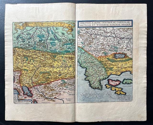 Dal “Theatrum Orbis Terrarum”, Anversa, 1570 circa. Incisione in rame, colore d'epoca, cm 49,5 x 59,5 (alla lastra) più margini, testo latino al verso con capolettera colorati. Esemplare a pieni margini e in magnifica coloritura coeva, ottimo stato di conservazione.