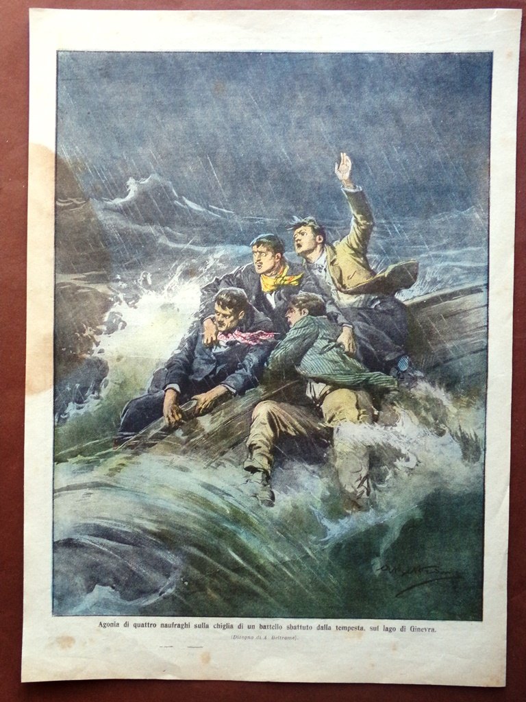 Retrocopertina Domenica Corriere nr. 30 del 1910 Naufraghi sul Lago di Ginevra