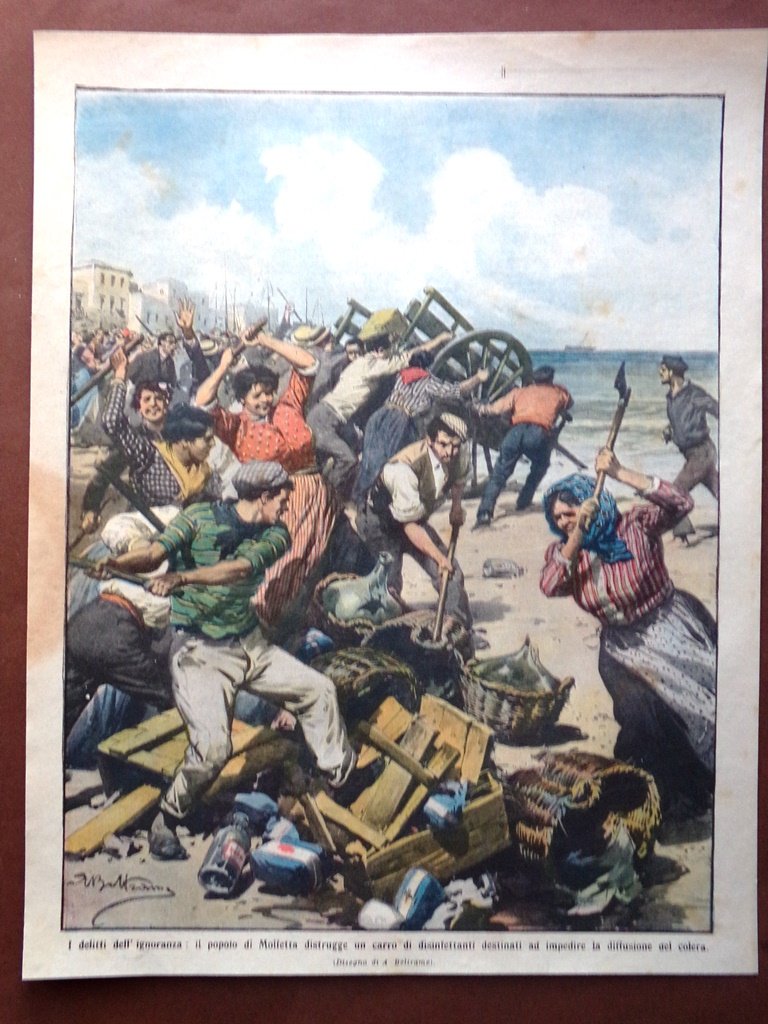 Retrocopertina Domenica Corriere nr. 44 del 1910 Popolo Molfetta Disinfettanti