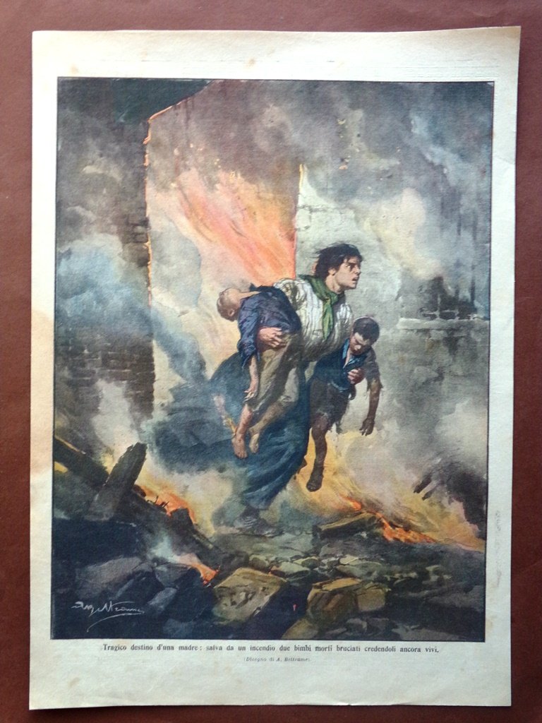 Retrocopertina Domenica Corriere nr. 45 del 1910 Destino di Madre Bimbi Bruciati