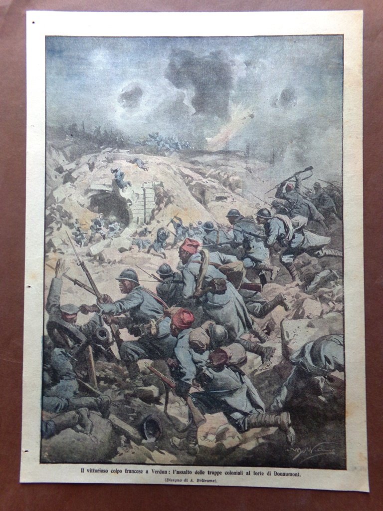 Il vittorioso colpo francese a Verdun: l'assalto delle truppe coloniali al forte di Douaumont (Achille Beltrame)