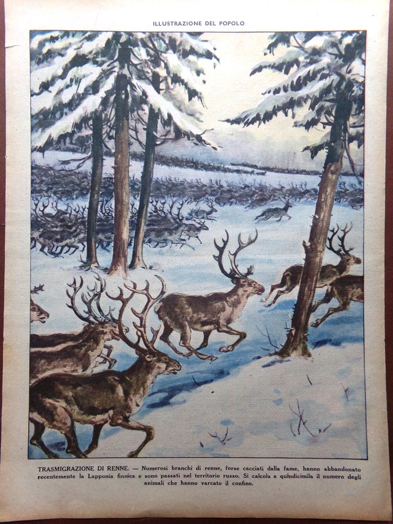 Retrocopertina Illustrazione del Popolo nr. 12 del 1943 Branchi Renne Lapponia
