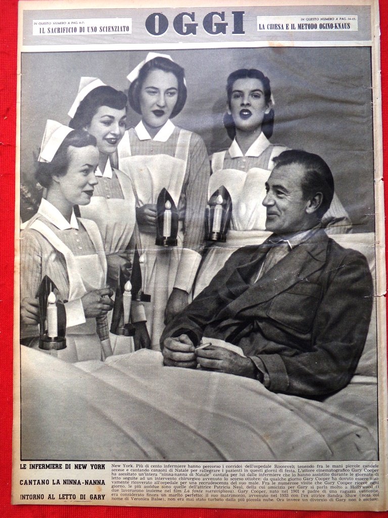Retrocopertina Oggi nr. 1 del 1952 Gary Cooper in Ospedale Roosevelt Infermiere