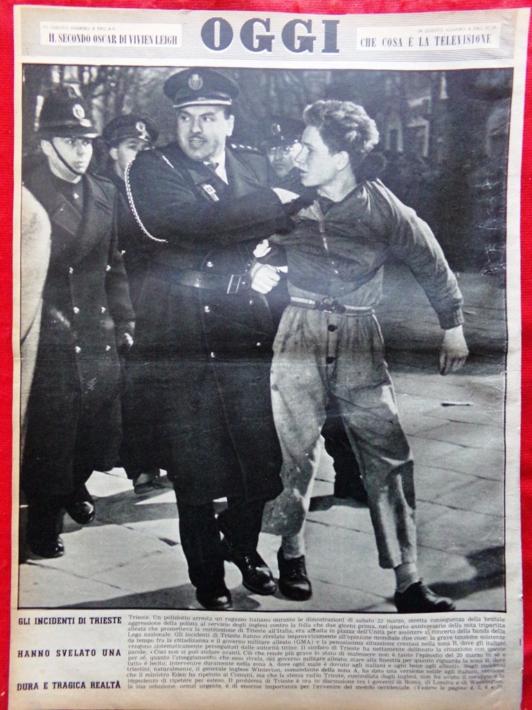 Retrocopertina Oggi nr. 14 del 1952 Incidenti a Trieste Arresto Ragazzo Italiano