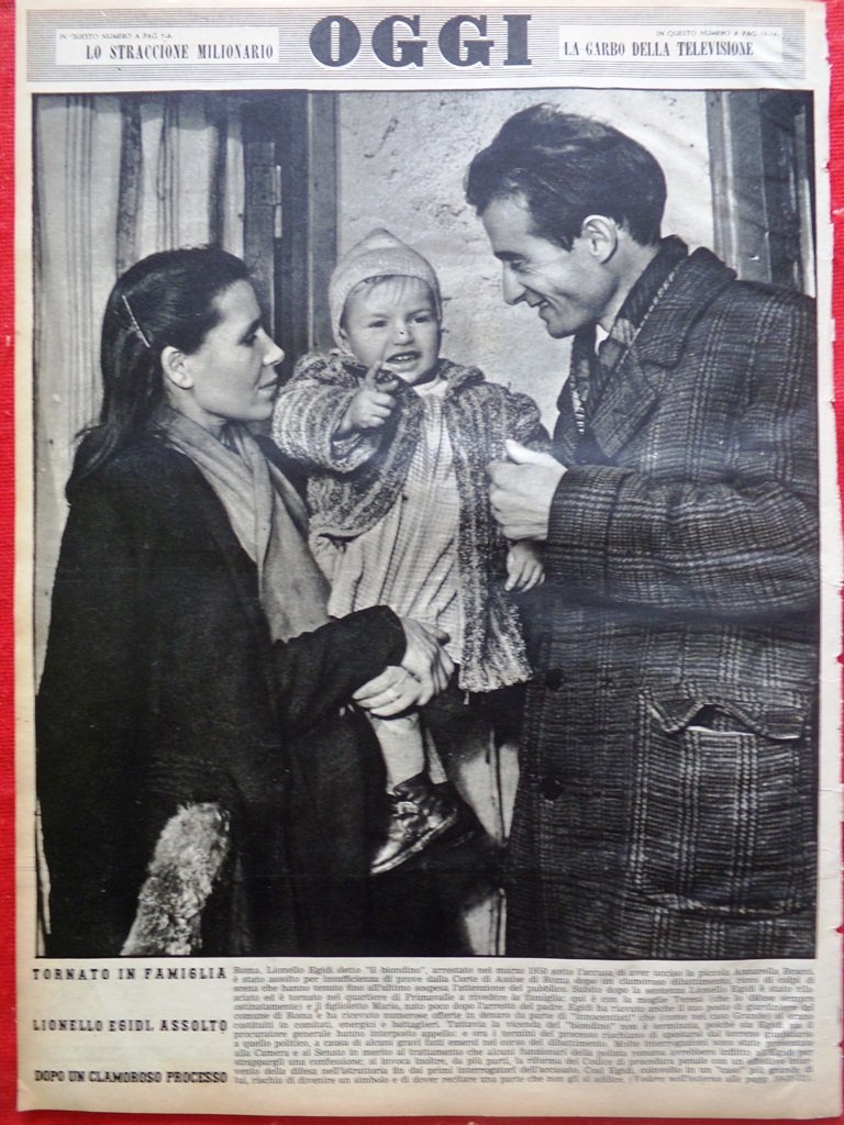 Retrocopertina Oggi nr. 5 del 1952 Lionello Egidi Assolto dopo processo