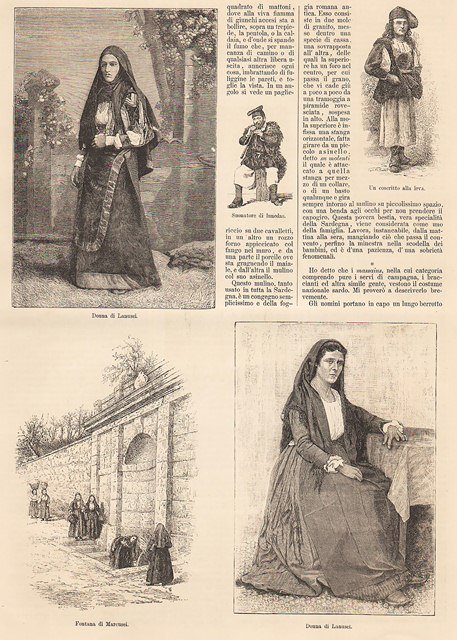 Cinque vignette mostrano diversi costumi tipici sardi della zona di Lanusei. Testo al retro
