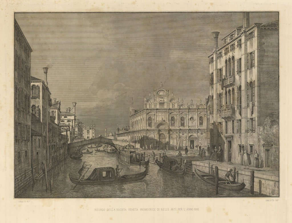 Bella e grande veduta di Venezia stampata in ricordo della Sociatà Veneta promotrice di Belle Arti per l'anno 1883. Incisa dal Simonetti ispirato da un dipinto di Giovanni Antonio Canal, meglio conosciuto come il Canaletto