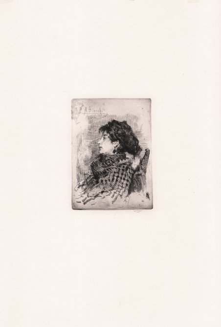 Acquaforte e bulino circa 1880, firmato in lastra in alto a sinistra. Incisione inedita, appartenente alla tiratura Antonio Fusetti (Milano 1962) in 160 esemplari numerati. Influenzato dallo stile di Faruffini e Mariano Fortuny, Mosè Bianchi inizia con quadri storici di soggetto romantico, per volgersi poi al genere e al paesaggio. La sua pittura parve assai rinnovatrice, per l’attenzione data agli effetti atmosferici e per la tecnica spigliata, in realtà più vicina a quella del Fortuny che a quella degli impressionisti. Egli realizzò circa settanta opere incise all’interno delle quali riportò ciò che rappresentava nei dipinti ma l’attenzione non è più rivolta tanto al soggetto quanto ai giochi chiaroscurali. Bibliografia Mosè Bianchi. Opera grafica, Milano, Antonio Fusetti, 1962, n. 17; cfr. Giubbini G., "L'acquaforte originale in Piemonte e in Liguria. 1860-1875", Genova 1976; cfr. "Mosè Bianchi e il suo tempo", cat. della mostra, Milano 1987. Etching and engraving circa 1880, signed in plate at upper left. Unpublished engraving, belonging to the Antonio Fusetti issue (Milan 1962) in 160 numbered examples. Influenced by the style of Faruffini and Mariano Fortuny, Moses Bianchi began with historical paintings of romantic subjects, then turned to the genre and landscape. His painting seemed very innovative, for the attention given to the atmospheric effects and for the easy technique, actually closer to that of Fortuny than to that of the impressionists. He made about seventy engraved works in which he reported what he represented in the paintings but the attention is no longer directed so much to the subject as to the chiaroscuro games. Bibliografia Mosè Bianchi. Opera grafica, Milano, Antonio Fusetti, 1962, n. 17; cfr. Giubbini G., "L'acquaforte originale in Piemonte e in Liguria. 1860-1875", Genova 1976; cfr. "Mosè Bianchi e il suo tempo", cat. della mostra, Milano 1987. Cfr.