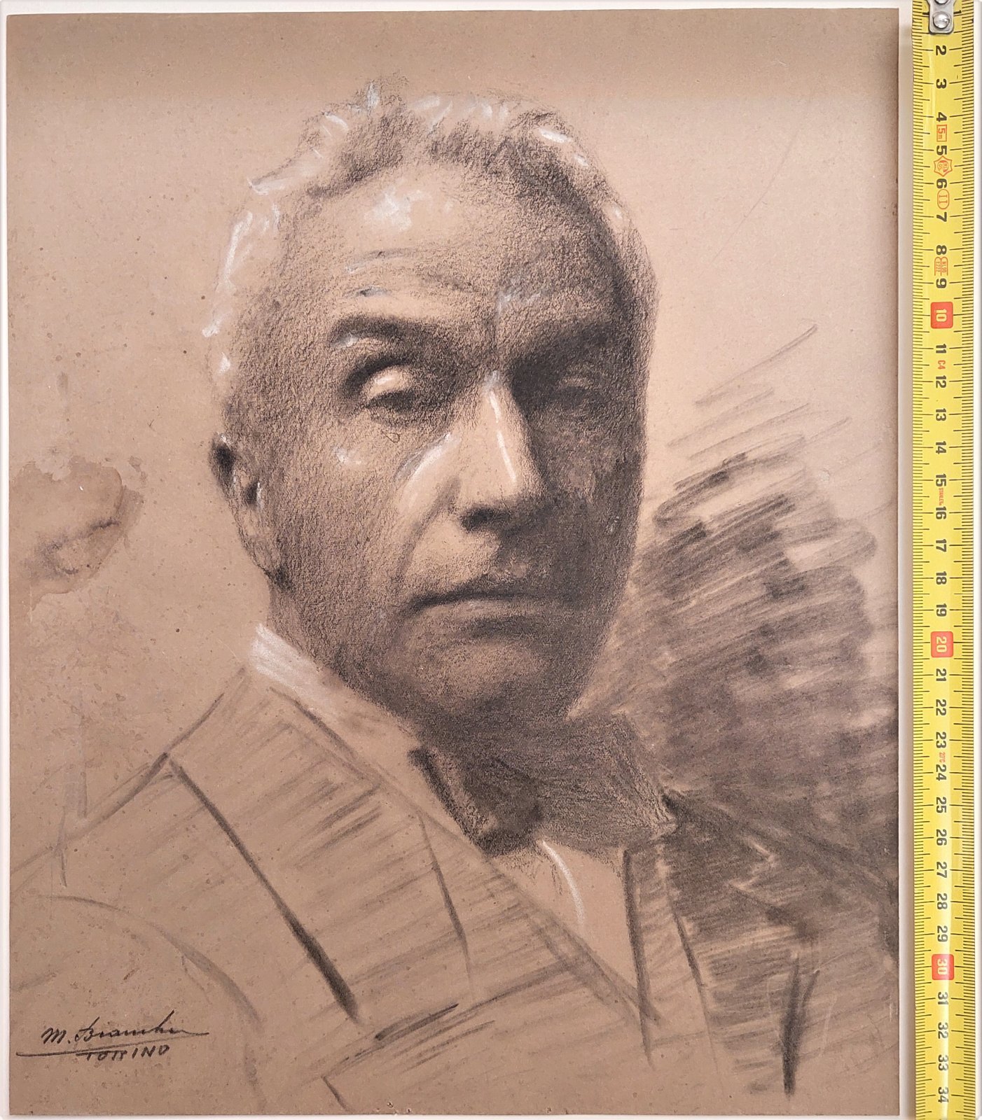 Disegno Ritratto di figura maschile firmato M. Bianchi Torino 1900 c.a.