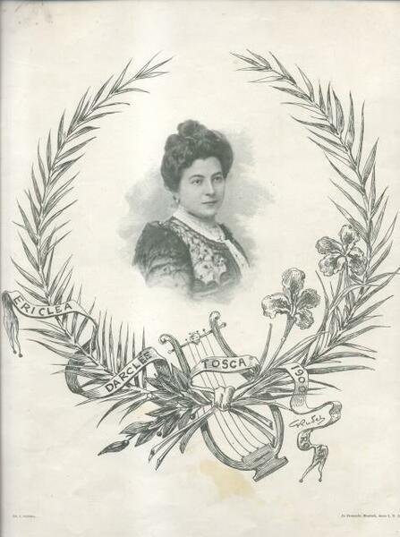 Ritratto in fototipia della cantante Ericlea Darclée, tratta dalla rivista "Le cronache musicali", anno I, n°2, in occasione della prima esecuzione assoluta dell'opera "Tosca", Febbraio 1900.