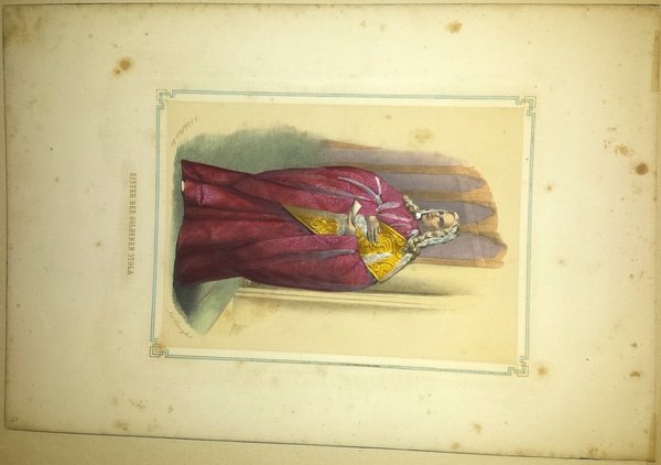 Litografia su foglio (33,5 x 50) cm. Bella colorazione probabilmente coeva. Pieni margini. In basso alla stampa, in corsivo: a sinistra "Rebellato dis.", a destra: "Lit. Brizeghel". Fa parte di: Das Malerische, Monumentale, Historische und Artistische Venedig : eine Darstellung seiner haupt-ansichten und alten gebrauche / in 60 Steindruk-tafeln, Gezeichenet von M. Moro und J. Rebellato, mit Beschreibendem Text von Franz Zanotto ; aus dem Italienichen von Adalbert MullerVenezia, Giovanni Brizeghel editore, Tip. Lit. Calc. e Libraio, Procuratie Vecchie N.° 137, 1856". Poche fioriture. Ottimo esemplare