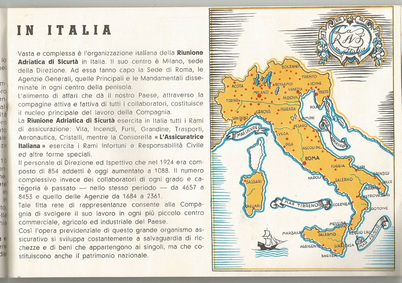 DESCRIZIONE Splendido libretto pubblicitario in italiano della RAS. Stampato nel 1935.