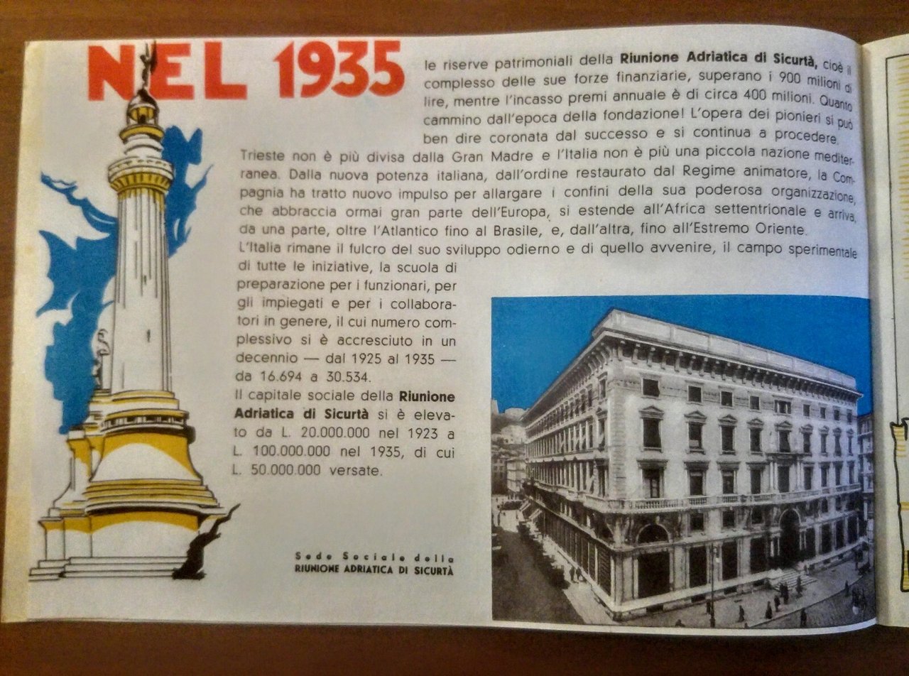 RIUNIONE ADRIATICA DI SICURTA' bellissimo libretto pubblicitario 1935 illustrato