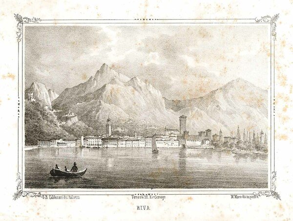 Veduta della città di Riva sul lago di Garda. Leggeri segni di foxing. Rif: Spini, "Il Garda nelle stampe", p. 112