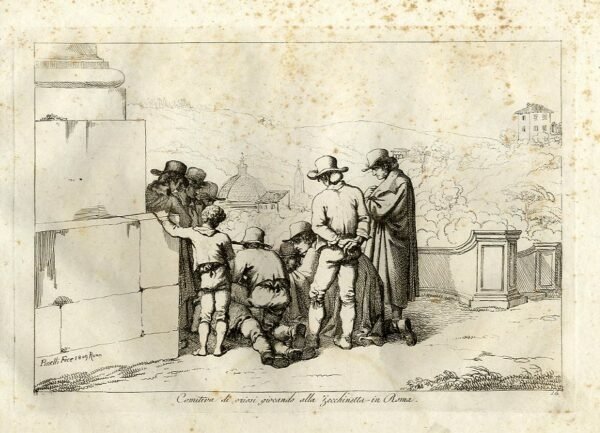 ROMA - Costumi - "Comitiva di oziosi giocando alla Zecchinetta in Roma". Giocatori d'azzardo ai piedi di una colonna.