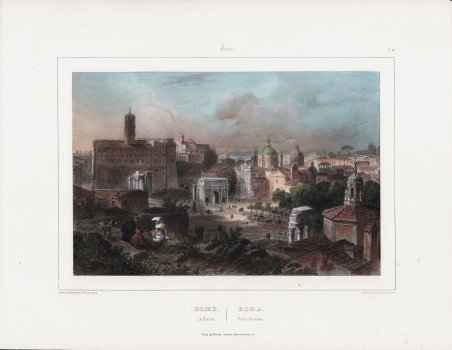 Tavola tratta dalla serie di vedute dal titolo "L'Italie, collection des sites les plus renommés et des Monumens les plus remarquables de ce pays".Disegnata e litografata da Isidor L. Deroy per l'editore Jeannin di Parigi.Litografia, finemente colorata a mano, in ottimo stato di conservazione. View taken from "L'Italie, collection des sites les plus renommés et des Monumens les plus remarquables de ce pays".Designed and lithographed by Deroy for the publisher Jeannin of Paris.Litograph with fine hand colouring, excellent condition. Cfr.
