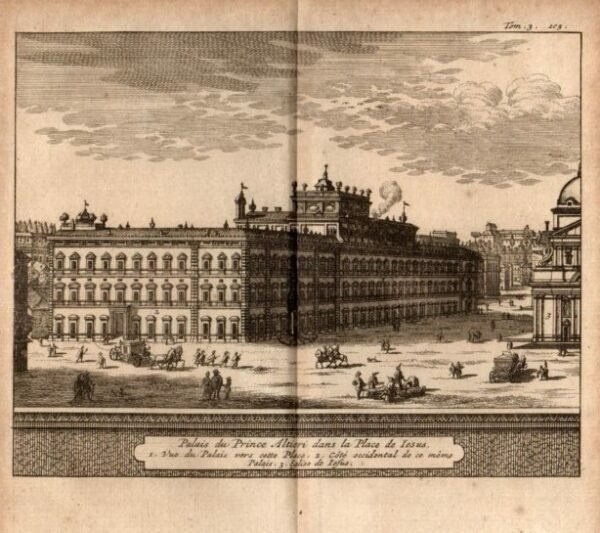 ROMA - "Palais du Principe Altieri dans la Palce de Iesus" veduta del palazzo e scorcio di piazza del Gesù.
