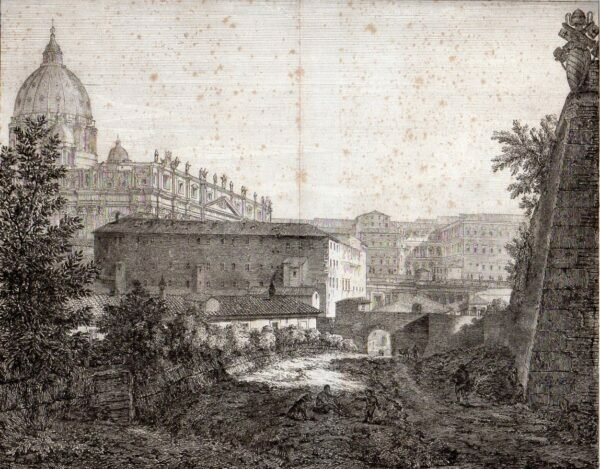 Acquaforte, f. 26x33 cm. ca. In: "Vedute delle porte e mura di Roma disegnate ed incise all'acqua-forte dall'architetto Luigi Ricciardelli" Roma