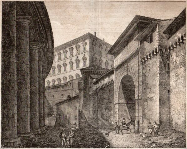 Acquaforte, f. 26x33 cm. ca. In: "Vedute delle porte e mura di Roma disegnate ed incise all'acqua-forte dall'architetto Luigi Ricciardelli" Roma