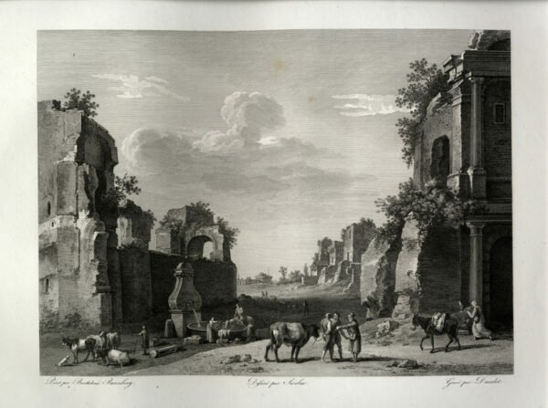 ROMA - "Ruines du Campo Vaccino à Rome". Peint par Batholomé Breenberg. Dessiné par Sivebac - Gravé par Daudet. Bellissimo paesaggio decorativo.